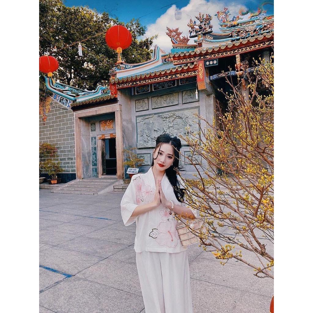 Hình ảnh chi tiết bộ đồ lam đi chùa là Shop tự chụp + Video shop tự quay.