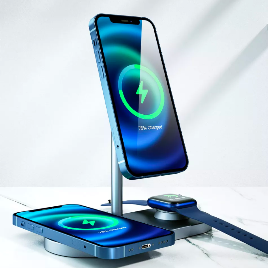 Lực hút nam châm tăng 20% so với các sản phẩm thông thường, giữ chặt thiết bị tương thích ngay cả khi di chuyển. Bạn có thể sạc ba thiết bị cùng lúc với một