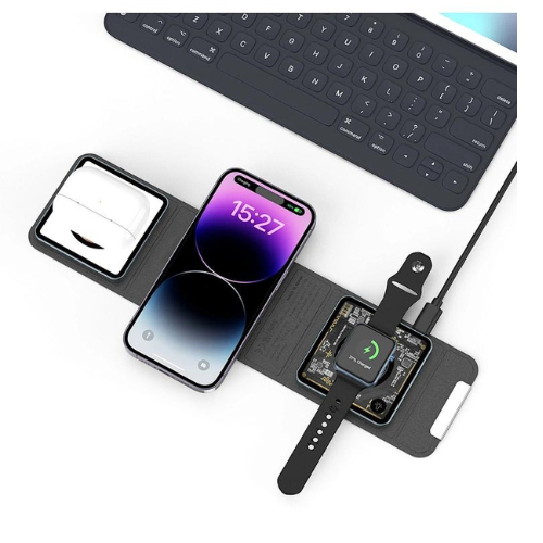 Sạc không dây 3 trong 1, gấp gọn tiện lợi: WIWU Triple 3in1 W001 là giải pháp sạc không dây hoàn hảo cho đồng hồ thông minh, tai nghe không dây và điện thoại của bạn. Thiết kế gấp gọn thông minh giúp bạn dễ dàng mang theo bên mình mọi lúc mọi nơi.