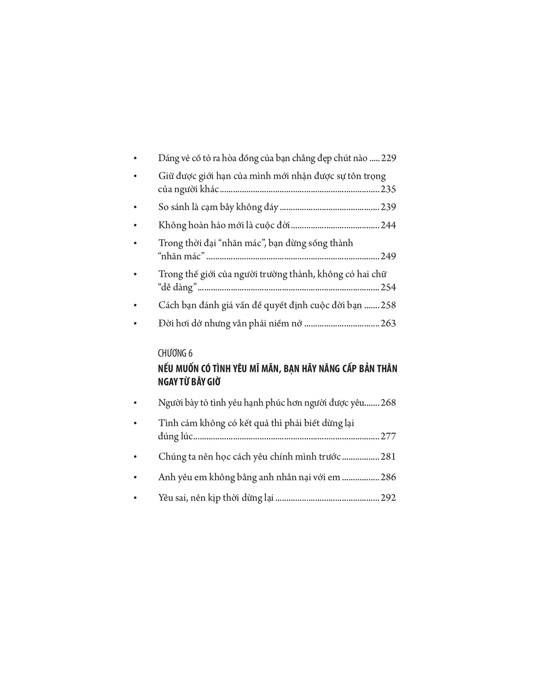 Chúng ta thường có xu hướng bỗng dưng theo đuổi một số thứ, rồi lại bất ngờ từ bỏ một số thứ. Chúng ta không đủ thấu hiểu bản thân và dễ bị cuốn theo số đông như một thói quen. Có lẽ đây chính là căn nguyên của mọi phiền não. Kinh nghiệm dành cho bạn là: Nhảy ra khỏi mục tiêu bạn muốn theo đuổi và nhìn rõ vị trí thực sự của nó trong thế giới này. Chỉ có như vậy, bạn mới không bị cuốn theo bất cứ ai hay sự vật nào, không vì có được mà vui quên trời đất, cũng không vì mất đi mà đau khổ đến tột cùng.