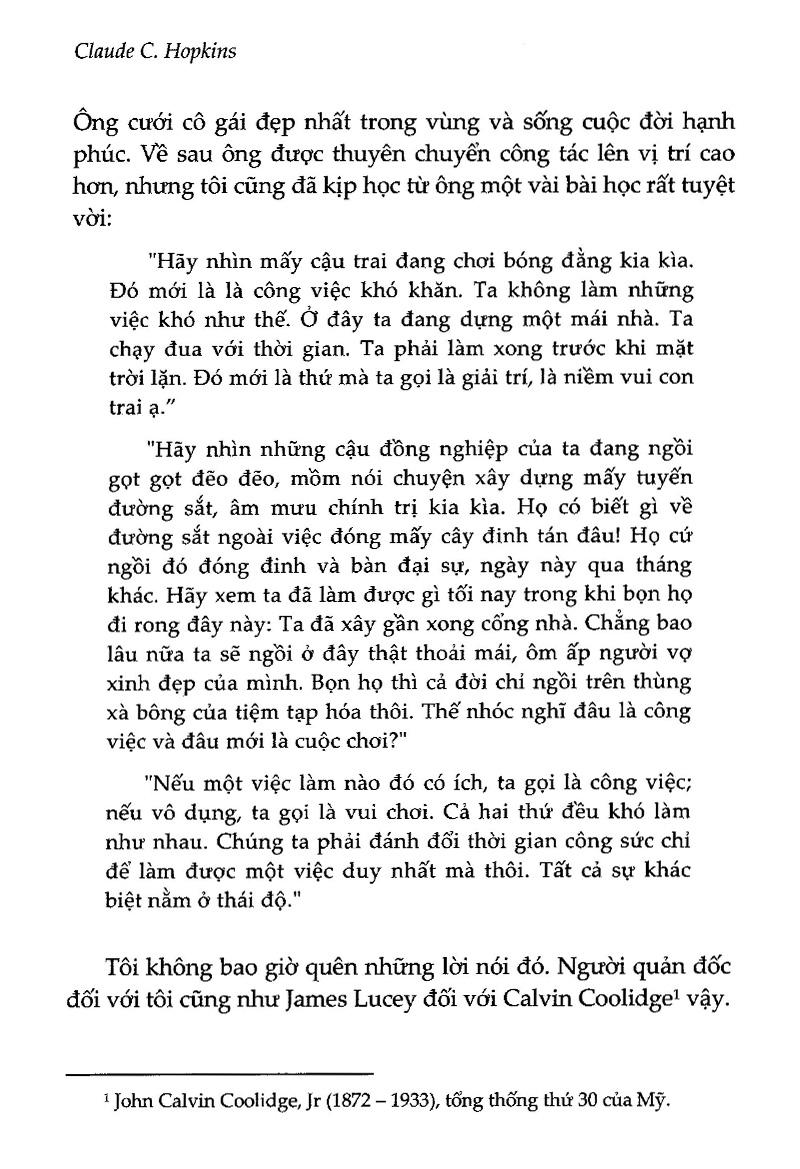 Palmolive khởi đầu chỉ với 700 USD quảng cáo thử nghiệm. Giờ đây nó là một phần của Colgate-Palmolive nổi tiếng toàn cầu. Pepsodent được sinh ra trong những đêm buồn tại một dự án thủy lợi ở Arizona. Giờ nó là một trong những nhãn hàng số một của Unilever. Goodyear đã từng chỉ dám chi 40 nghìn USD cho quảng cáo mỗi năm vì chả ai tin là có người quan tâm đến lốp xe. Giờ nó là công ty lốp xe ai ai cũng biết. Hopkins khởi đầu chỉ có 100 USD trong tay. Vào cuối đời, ông là một trong những cây đại thụ của ngành quảng cáo. Bạn thực sự không muốn nghe câu chuyện về họ sao?