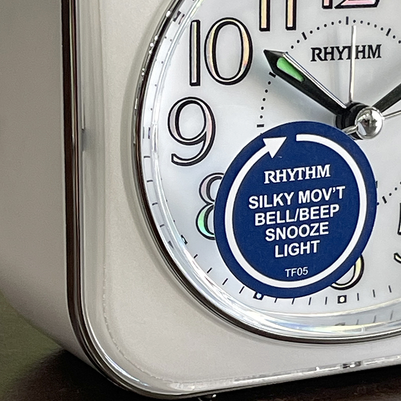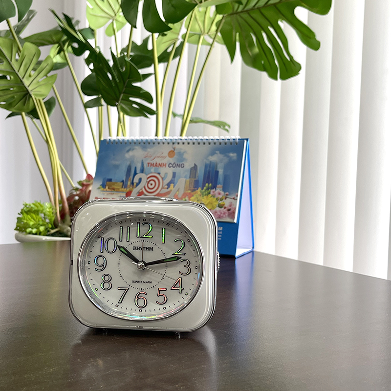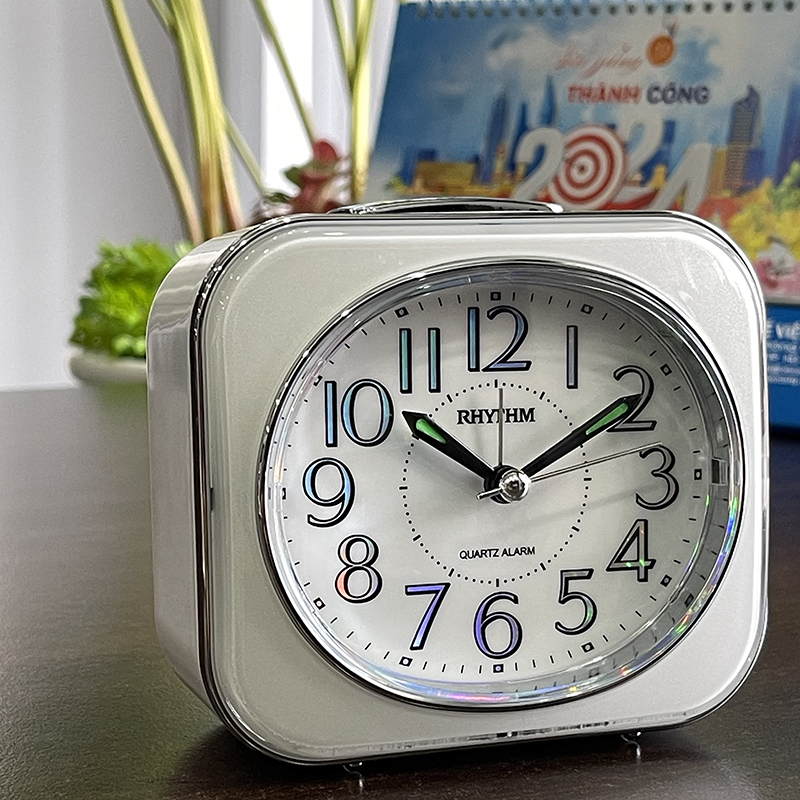 Đồng hồ báo thức Rhythm CRF801NR03 – KT:11.3 x 10.2 x 6.6cm. TRọng lượng 220g Vỏ nhựa. Dùng Pin. 2 chức năng Báo thức tiếng bíp và tiếng chuông reng, có chức năng reo lập