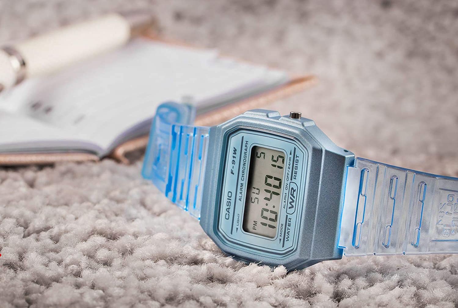 Đồng Hồ Casio Điện Tử F-91WS-7DF Dây Nhựa Trong - Mặt Vuông