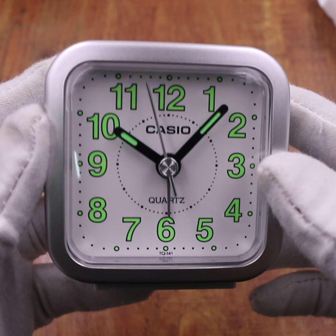Đồng hồ báo thức để bàn TQ-141-2DF có thiết kế đơn giản thanh lịch và nhỏ gọn hiện thị đầy đủ tính năng xem giờ, báo thức có dạ quang trên mặt số và kim