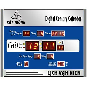 Đồng hồ treo tường Thông Tin Sản Phẩm Lịch Vạn Niên Cát Tường 3A sở hữu led điện tử sử dụng điện cùng kích thước nhỏ gọn đơn giản nhưng vẫn hiển thị đầy đủ