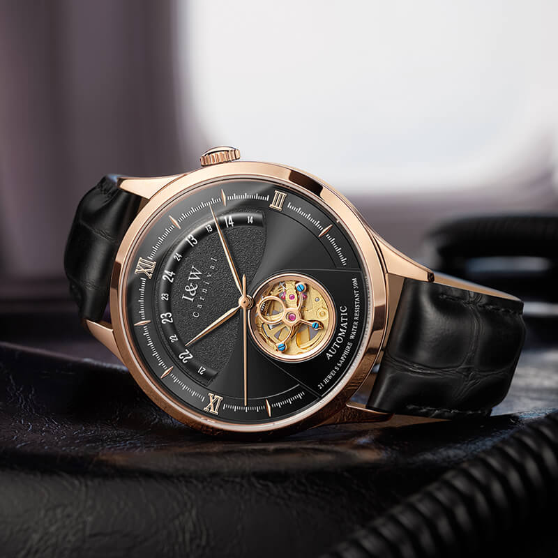 IW CARNIVAL IW525G-3 được hãng thiết kế mang phong cách cổ điển, mặt đen làm chủ đạo, được nhiều người yêu thích. Thiết kế lộ cơ đăng cấp của IW CARNIVAL IW525G-3 khoe ra bộ máy bên trong, khẳng định khả năng chế tác đồng hồ của một trong những thương hiệu hàng đầu của Thụy Sỹ.