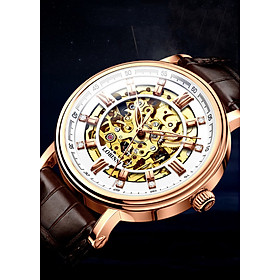 ❏ Vàng hồng 18K: Là vàng nguyên khối, phủ trọn gần như là toàn bộ mặt số đồng hồ LOBINNI L9010-2. Trong khi đó, sự sang trọng lại được kết hợp với nền tảng Skeleton độc đáo, giúp các quý ông chìm đắm ở cả mặt trước lẫn mặt sau thiết kế.