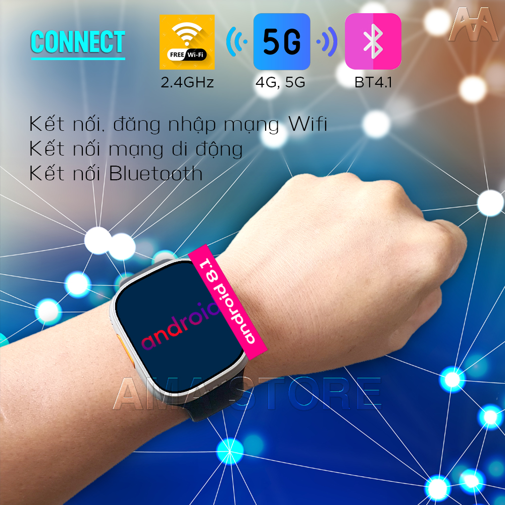 AMA TK WATCH không chỉ hỗ trợ mạng Wifi và Bluetooth, mà còn có khả năng kết nối 4G, cho phép bạn truy cập internet nhanh chóng và mượt mà. Điều này giúp bạn luôn kết nối với thế giới trực tuyến, truy cập các ứng dụng, xem video và tham gia mạng xã hội.
