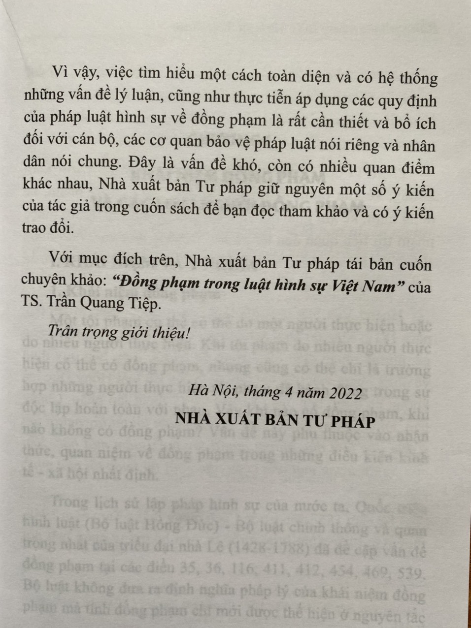 Sách viết về 03 vấn đề chính trọng tâm của chế định đồng phạm theo quy định của Bộ luật hình sự năm 2015 (sửa đổi, bổ sung năm 2017):