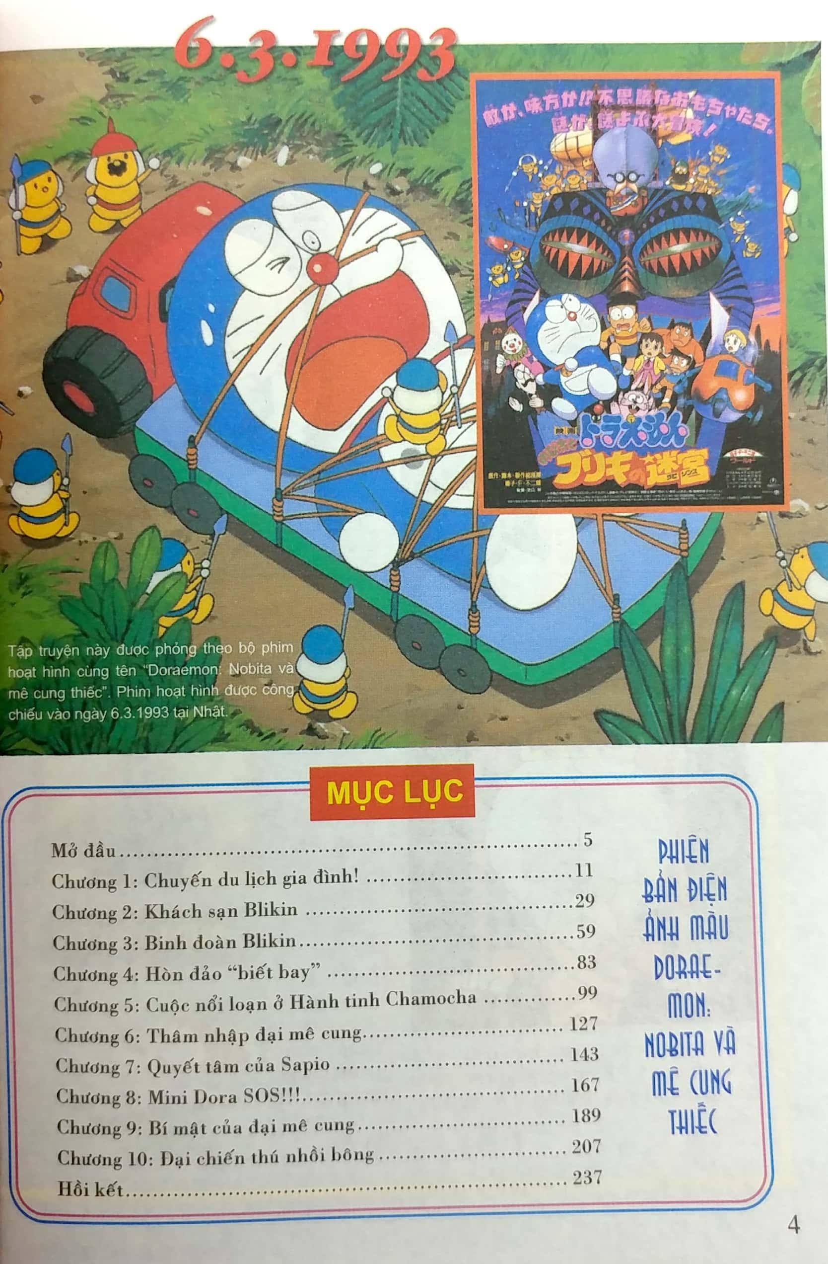 Mua tại TiktokDoraemon - Phiên Bản Điện Ảnh Màu - Ấn Bản Đầy Đủ Tập 14 - Nobita Và Mê Cung Thiếc Nobita và mê cung thiếc là tác phẩm thứ 14 trong loạt phim hoạt hình Doraemon rất được yêu thích, chuyển thể từ nguyên tác truyện tranh của tác giả FUJIKO F FUJIO (Bộ phim được công chiếu vào mùa xuân năm 1993). Doraemon đột nhiên bị đội quân rô-bốt phản loạn tại hành tinh Blikin bắt đ Cùng với đó là sự xuất hiện của cậu bé Sapio - người cầu cứu nhóm bạn Nobita giúp người dân hành tinh Chamocha thoát khỏi sự thống trị của tên rô-bốt độc tà Nào, mê cung đã mở cửa để chào đón tất cả chúng ta rồi đó!