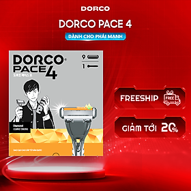 ✨DORCO PACE 4 - Dao Cạo Râu Hàn Quốc 4 Lưỡi - Hộp Làm Quà Tặng Gồm 1 Cán và 9 Đầu Cạo