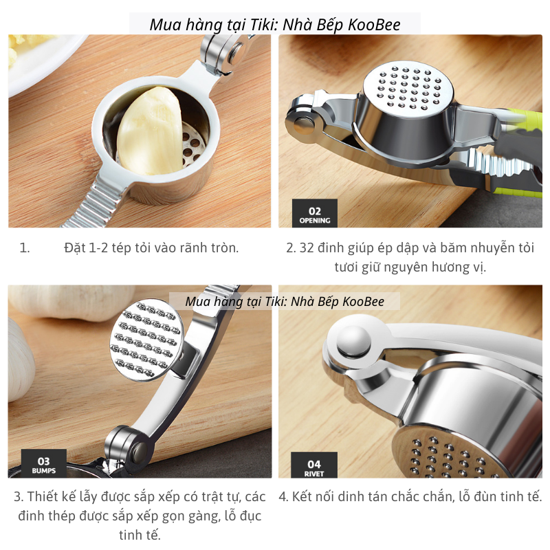TÊN SẢN PHẨM: Dụng cụ ép tỏi, kẹp hạt cứng cầm tay cao cấp INOX 100% chắc chắn bền đẹp (NB58) THÔNG TIN SẢN PHẨM - Quy cách đóng gói: 1 cái - Chất liệu: