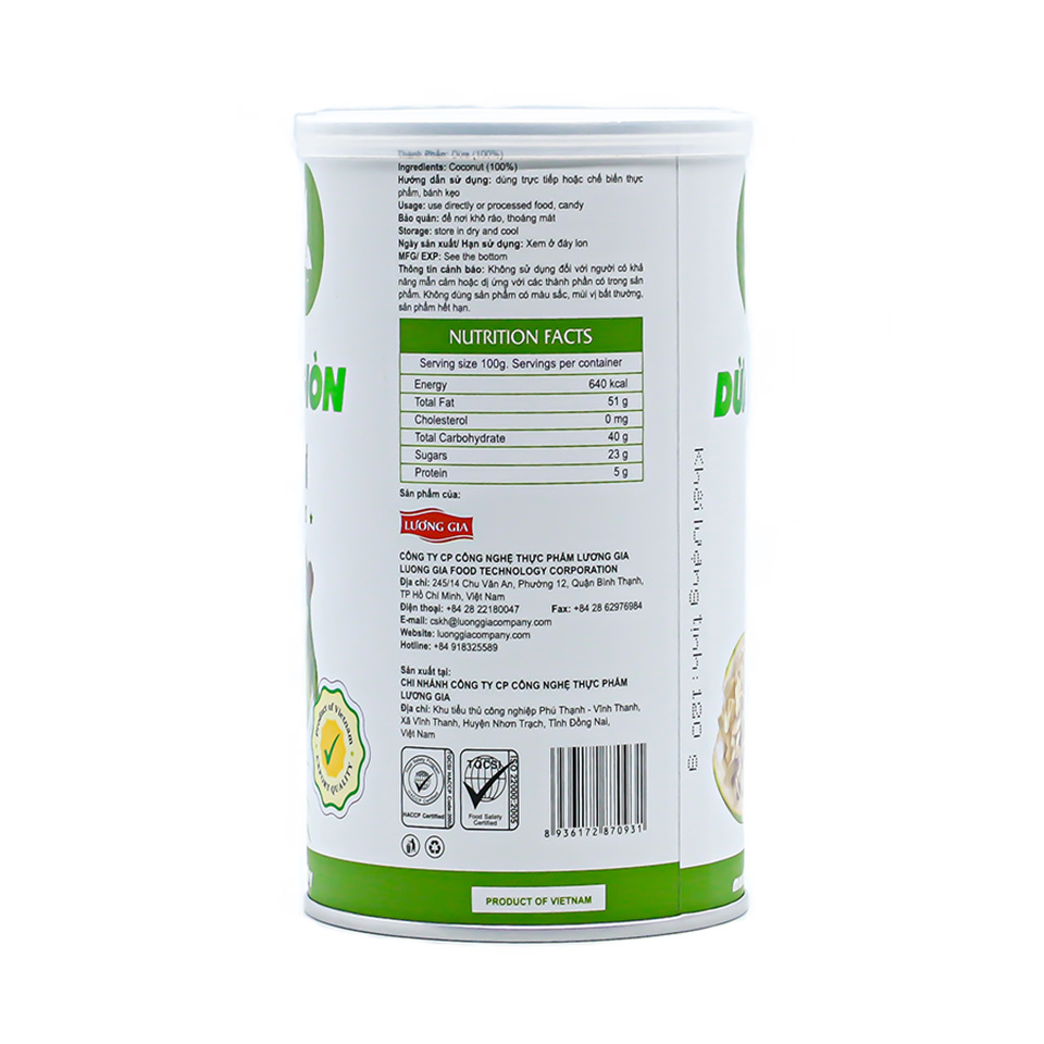 Mua tại TiktokLà một trong những nước có sản lượng dừa lớn trên thế giới, từ lâu người dân Việt Nam đã quen thuộc với loại nước giải khát tươi mát từ loại quả này. Trái dừa được giới chuyên môn đánh giá rất cao vì những giá trị mà nó mang lại. Dừa không chỉ là nguồn cung cấp muối khoáng dồi dào mà còn hỗ trợ hoạt động miễn dịch trong cơ thể. Dừa sấy giòn VN Fruit là một loại sản phẩm mới với hương thơm nồng nàn, khi ăn có vị ngọt béo, dễ dàng kết hợp với nhiều món ăn khác nhau như : chè, kem, kem xôi…. Tạo nên hương vị thật thơm ngon cho những món ăn vặt. Thông tin dinh dưỡng :