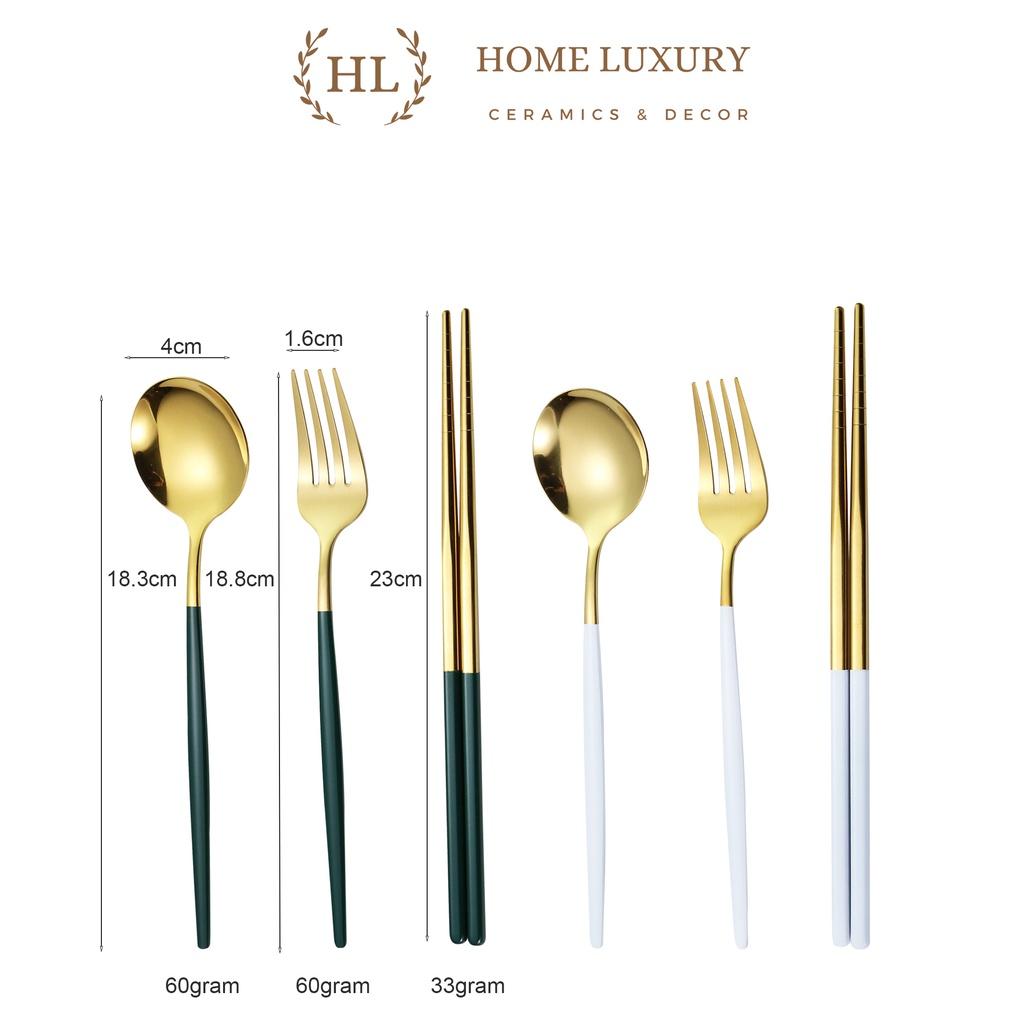 ✨ĐŨA - SÚP - NĨA INOX CAO CẤP KHÔNG MÒN | SET THÌA NĨA INOX PHONG CÁCH TÂN CỔ ĐIỂN HOME LUXURY DECOR XANH TRẮNG