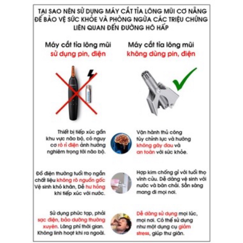 - Dụng cụ tỉa lông mũi cầm tay không cần điện hay pin pin.