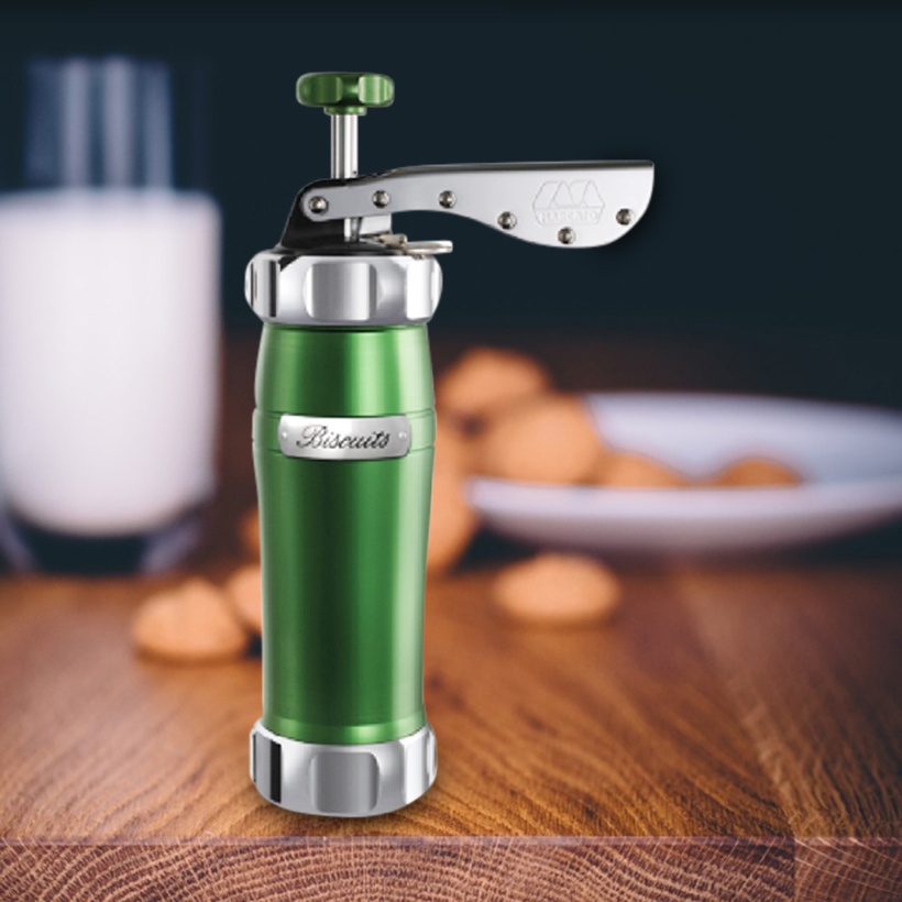 Sản phẩm bao gồm 1 thân máy, 1 tay cầm và 20 lưỡi tạo hình bánh quy.