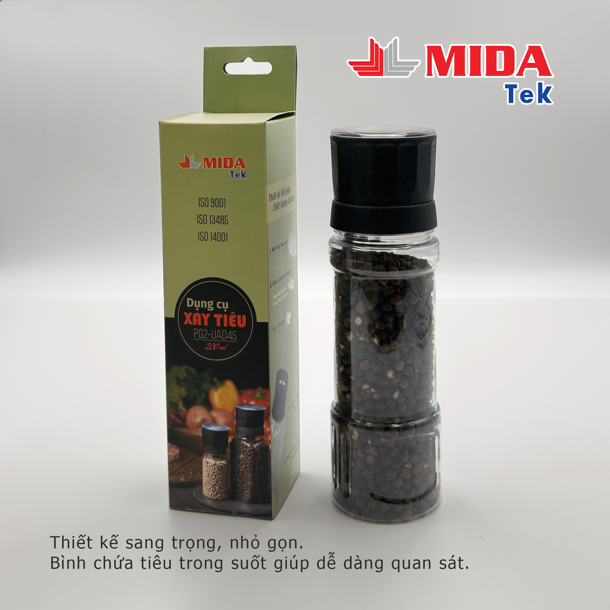 - Dụng cụ xay tiêu MIDATEK là một vật dụng không thể thiếu trong bếp ăn của người nội trợ. Vừa là dụng cụ đựng, bảo quản tiêu hạt, vừa giúp xay nhuyễn nhanh chóng, rắc tiêu trực tiếp lên bề mặt món ăn