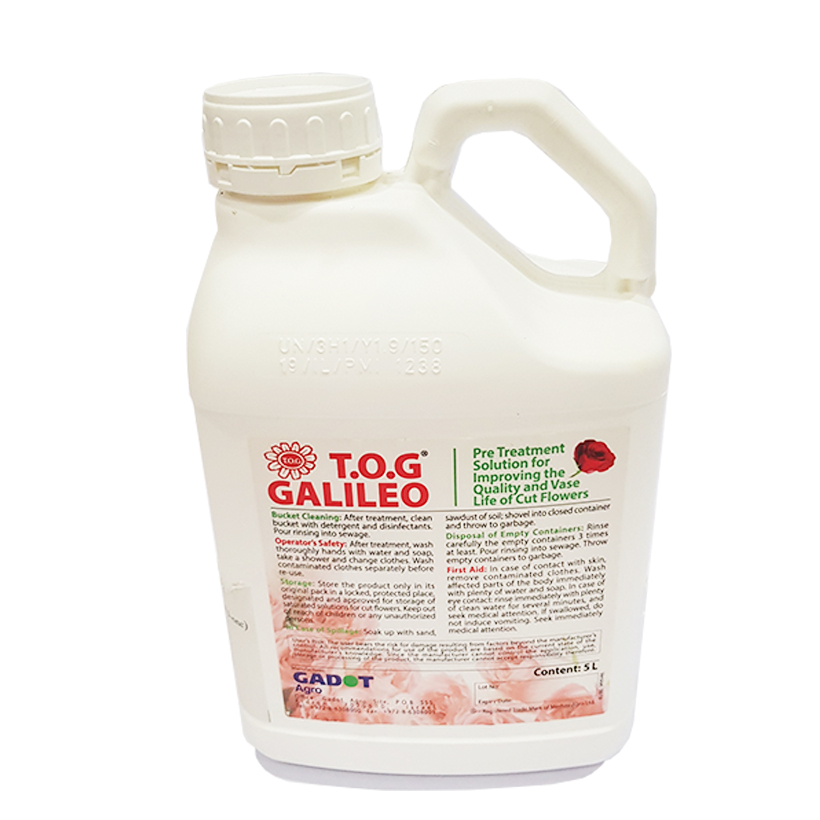 • Dung dịch bảo quản hoa TOG Galileo của Israel dùng xử lý mọi loại hoa và lá trang trí. Đặc biệt xử lý hoa Cúc, Hoa Đồng tiền và hoa kho lạnh khác mà không bị sốc nhiệt và đủ chuẩn để xuất khẩu hoa đi nước khác