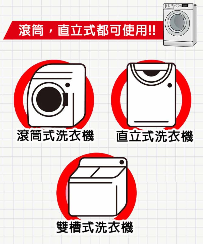 - Sản phẩm dùng được cho cả máy giặt lồng ngang, lồng đứng & lồng nghiêng (bao gồm cho cả lồng inox & lồng nhựa)
