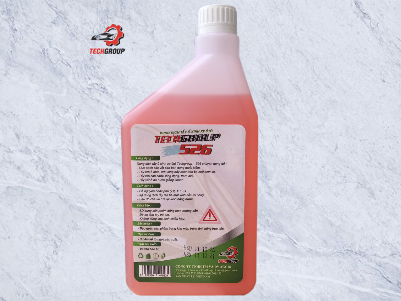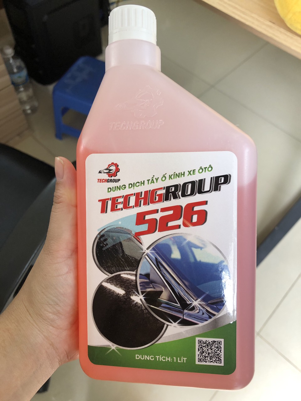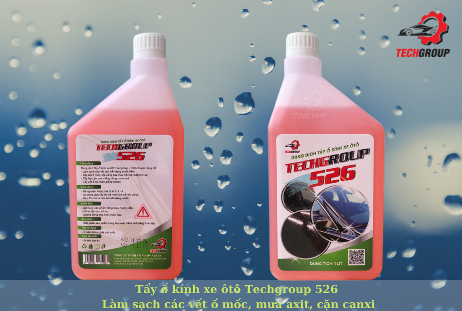 Dung dịch tẩy ố kính 526. 1. Công dụng : Dung dịch tẩy ố kính xe ôtô Techgroup – 526 chuyên dùng để : - Làm sạch các vết cặn bẩn dạng muối kiềm. - Tẩy