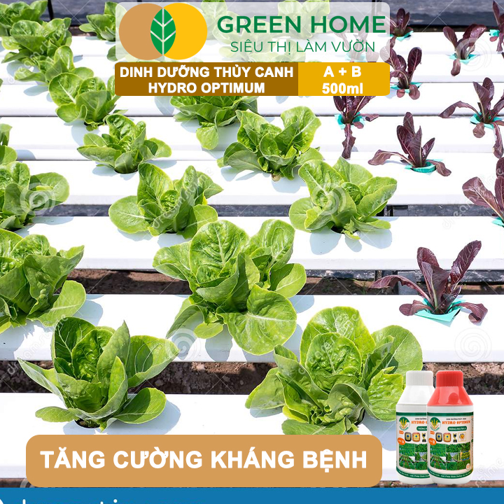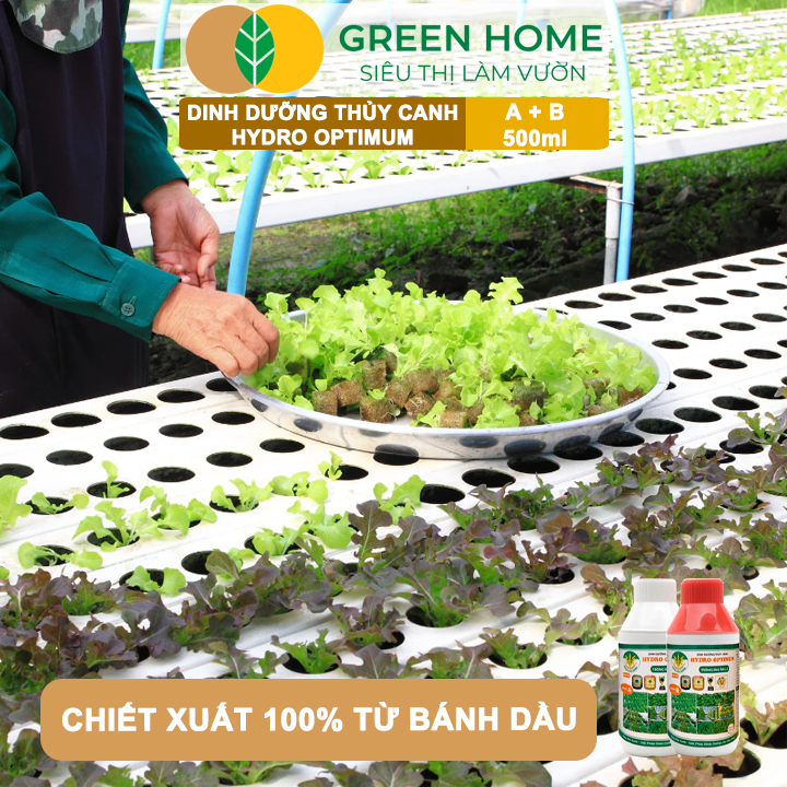 - Hydro Optimum bao gồm 2 chai A và B, cung cấp đầy đủ 13 nguyên tố khoáng thiết yếu (Đa - Trung - Vi lượng) và các axit amin, đảm bảo cây trồng không bị thiếu hụt bất kỳ dưỡng chất nào trong suốt quá trình sinh trưởng.