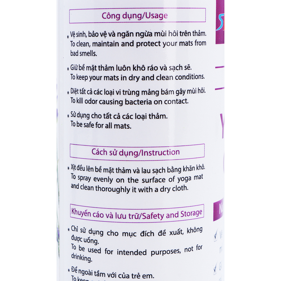 - Dung Dịch Vệ Sinh Thảm Tập Yoga Sportslink Lavender Mint (100ml) được dùng để vệ sinh, bảo vệ và ngăn ngừa mùi hôi trên thảm tập yoga. - Dung dịch có công dụng giữ