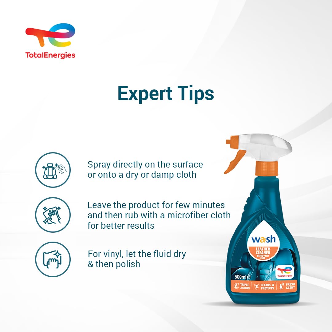 Dung dịch vệ sinh và bảo dưỡng ghế da ô tô Total Energies TE-LC500 500ml làm sạch và bảo dưỡng da trong nội thất xe ô tô, ghế da, da xe máy, túi xách và các phụ kiện da khác. Loại bỏ bụi bẩn, đồng thời giữ cho da sáng mềm mà không bị trơn trượt.