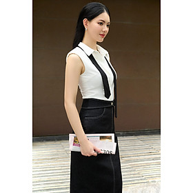 Set váy áo sơ mi dài tay sang trọng kín đáo Mã: SVLCG006 Màu: Đen Chất liệu: Acetate Số đo vòng1/vòng2(cm):