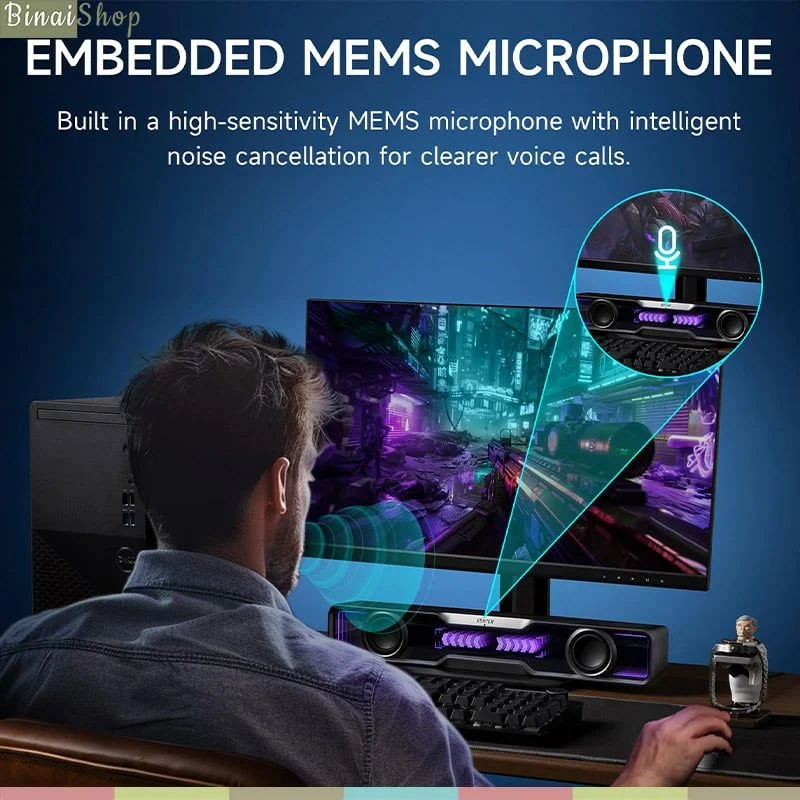 - Công suất đầu ra độc lập 2 bên loa 2,5W+2,5W, tần số từ 90Hz- 18kHz và màng loa 2 inch kép cùng âm trầm đối xứng tạo ra nhịp điệu năng động, âm thanh rõ ràng, trung thực, sống động hơn.