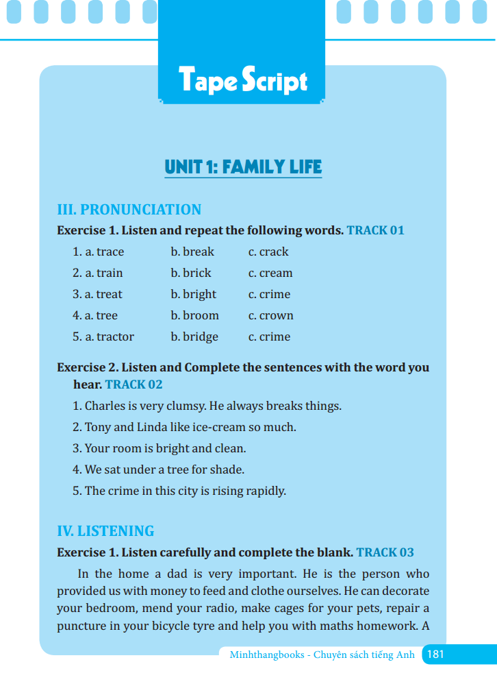 Kết hợp với nội dung trong sách là đĩa CD phát âm tiếng Anh chuẩn của người bản ngữ. Chúng tôi tin rằng bộ sách sẽ giúp các em học sinh nâng cao kiến thức và là nguồn tài liệu tham khảo đáng tin cậy cho thầy cô giáo và các vị phụ huynh trong quá trình giúp các em yêu thích môn học này