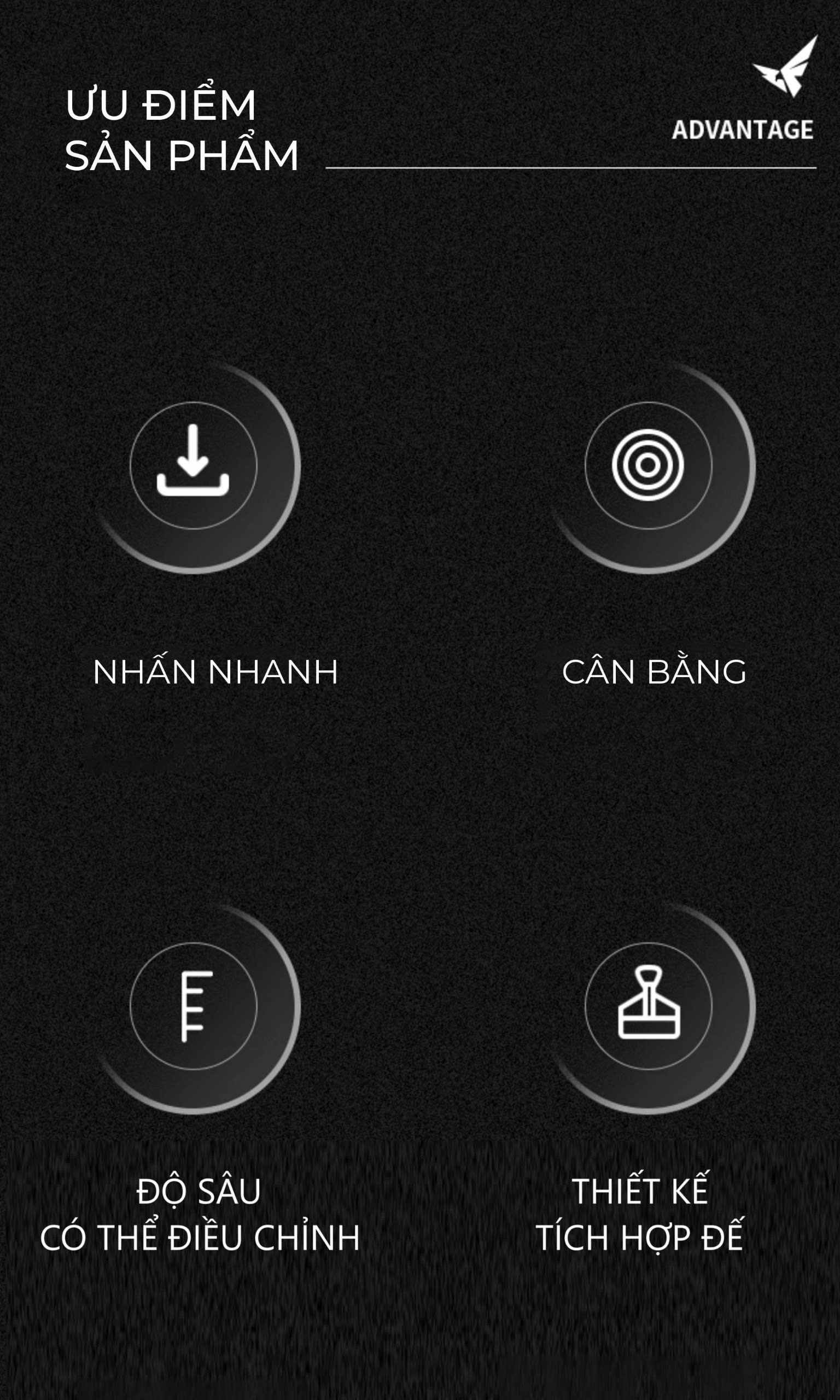 ● Cơ chế hoạt động: Nhấn xuống tự động xoay, điều chỉnh độ sâu linh hoạt