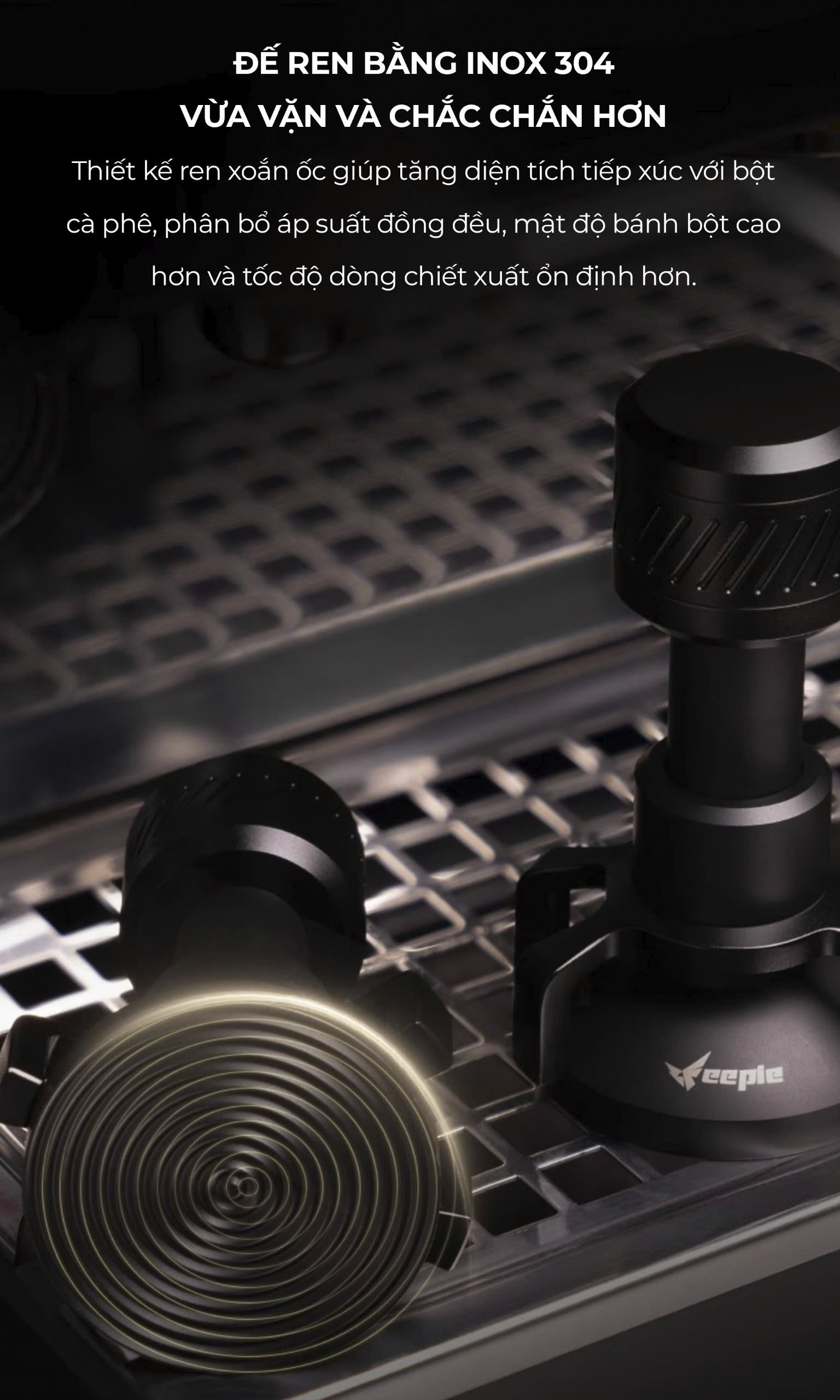 FEEPIE KIM XOAY TÁN BỘT CÓ VÒNG ĐỆM CAO SU – TỐI ƯU CHIẾT XUẤT, CẢI THIỆN CREMA! Bạn muốn phân bố bột cà phê đều hơn, hạn chế kênh rãnh để có chiết xuất