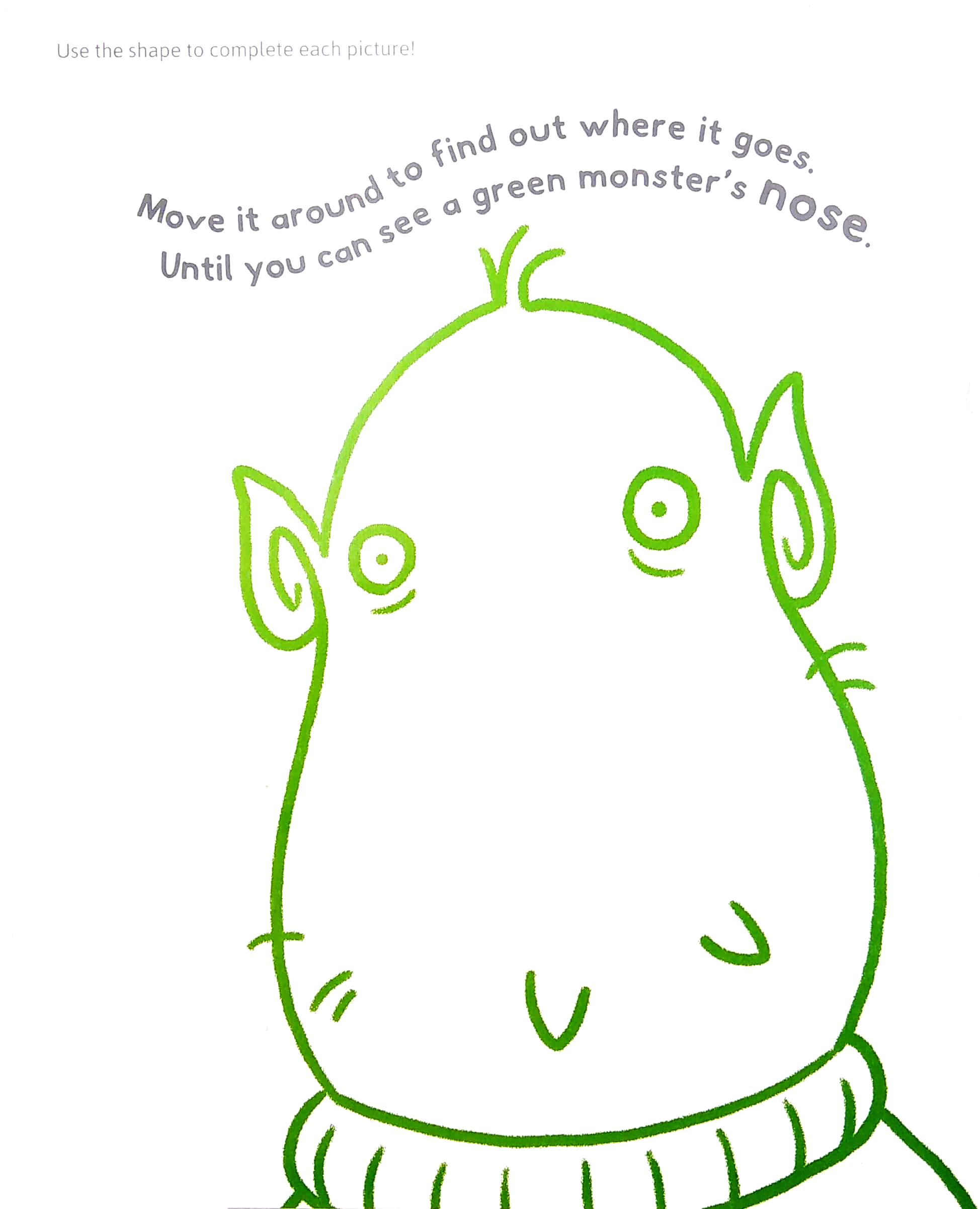 This clever book comes with a shape attached to a ribbon, for manoeuvring around! Read the clues and move the shape around until you complete the picture.What can it be, what can you see?