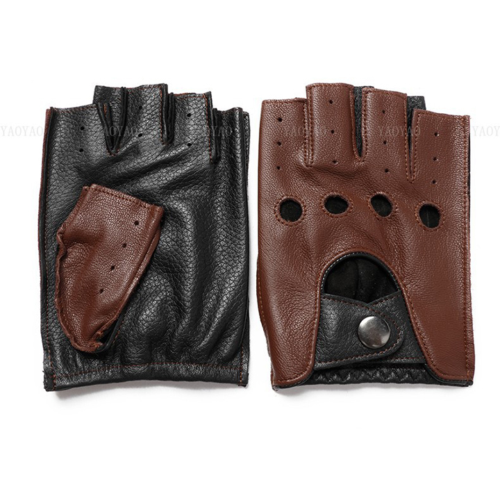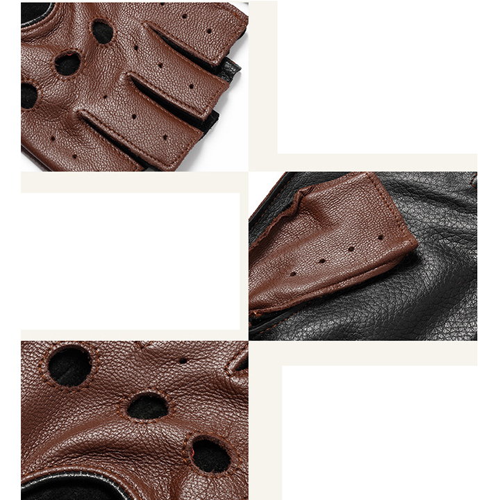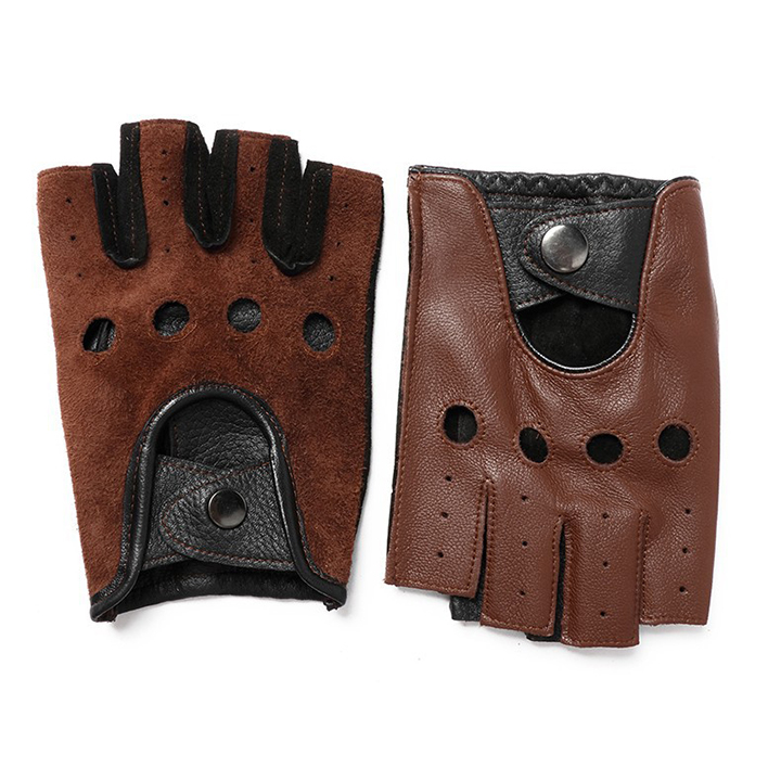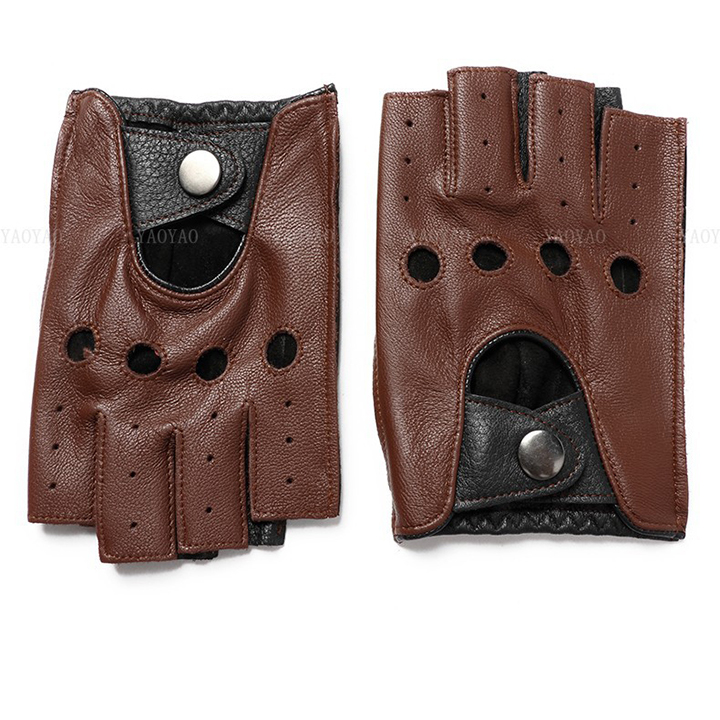 Găng tay hở ngón nam BHY8853 Bao da lái xe da cừu nguyên miếng