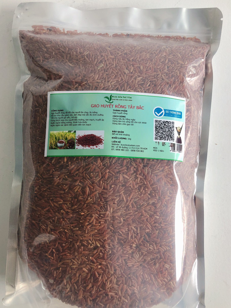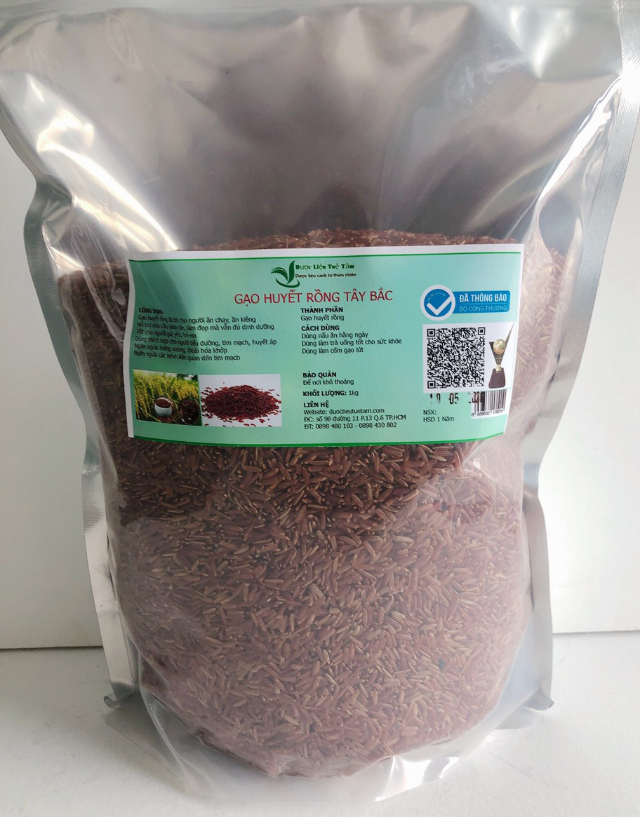 Gạo huyết rồng Phúc Thọ * Khối lượng : 01kg / Túi. Hạn sử dụng 12 tháng kể từ ngày sản xuất được ghi rõ trên vỏ hộp. * Đóng túi hút chân không bảo