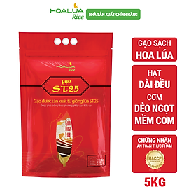 Mua tại TiktokGạo ST25 Hoa Lúa sản xuất từ giống lúa thơm phẩm chất thượng hạng của vùng Sóc Trăng, được vinh danh là gạo Ngon nhất Thế giới năm 2019 và 2023. ĐẶC TÍNH: Gạo ST25 Hoa Lúa với hạt gạo thon dài, đều và trắng trong, không bạc bụng. Cơm chín cơm mềm dẻo, có mùi thơm đặc trưng. Khi để nguội cơm vẫn giữ được độ ngon và dẻo, không bị khô cứng. Đạt chuẩn Global GAP, đóng gói theo tiêu chuẩn Châu Âu HACCP. HƯỚNG DẪN SỬ DỤNG:
