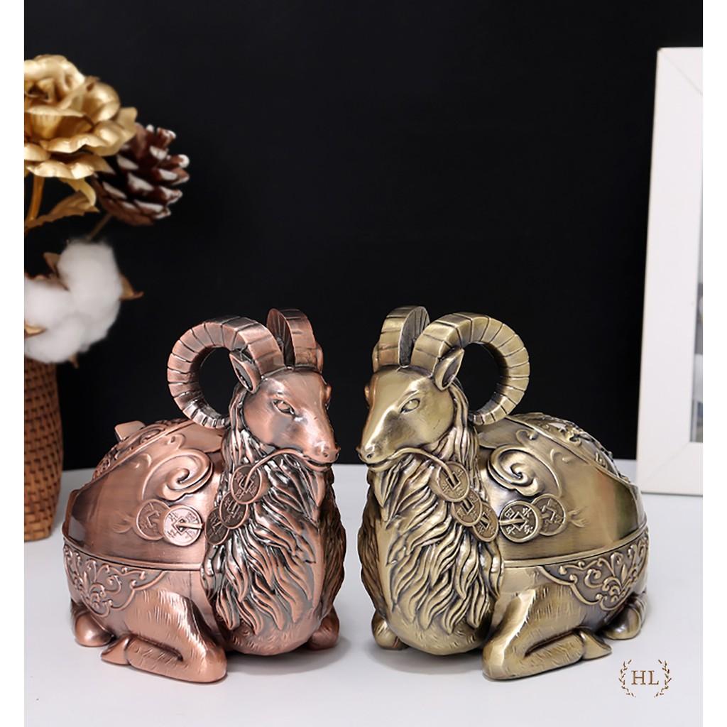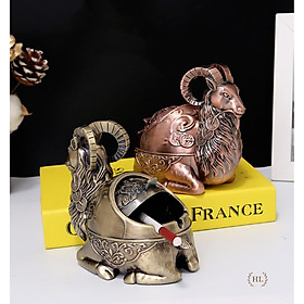 Gạt Tàn Thuốc bằng kim loại HÌNH DÊ Hoạ tiết chú DÊ ngộ nghĩnh Kích thước cao 15x9.13,5 cm Màu : Đồng đỏ