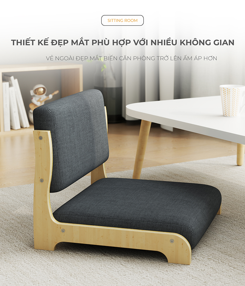 - Kích thước: Dài 46 Rộng 45cm Cao 40cm - Chất liệu: Khung gỗ Plywood phủ sơn mờ an toàn, không độc hại, thân thiện với môi trường - Mặt đệm mút phủ vải dệt bền đẹp, êm ái. - Đặc điểm nổi bật: Cấu trúc vững chắc, khả năng chịu lực cao, mang đến sự an tâm trong từng chuyển động. Tựa lưng có tỉ lệ hợp lý, nâng đỡ cột sống hiệu quả, giảm cảm giác mỏi khi ngồi lâu. Thiết kế gọn nhẹ, dễ dàng di chuyển, phù hợp với các không gian nhỏ hoặc bố trí linh hoạt theo nhu cầu.