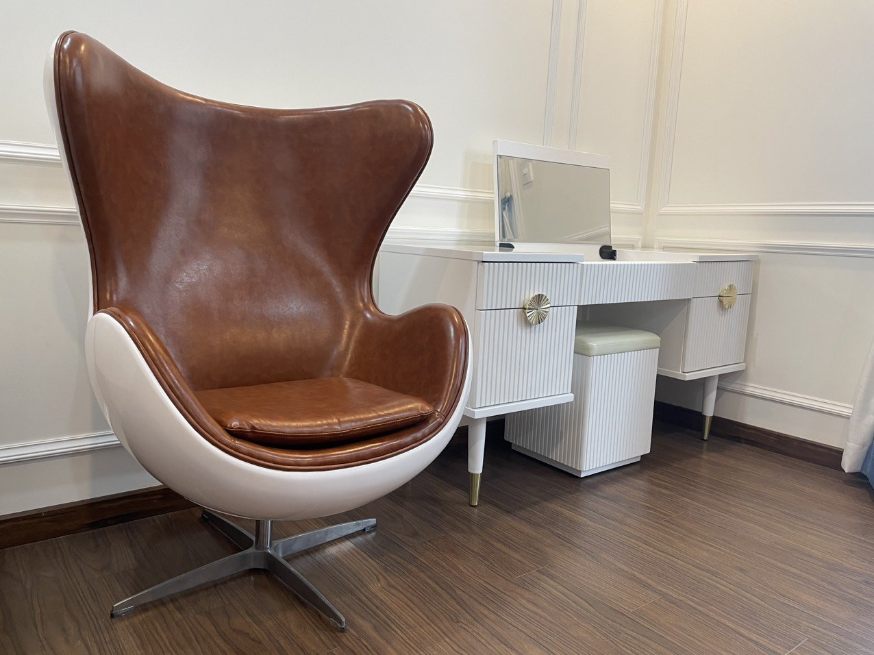 Quý khách hàng vui lòng chọn sản phẩm nhà bán TUNDO để nhận được sản phẩm đúng với chất lượng Mẫu ghế Egg Chair trang trí phòng ngủ hiện đại  Điểm độc đáo của ghế trứng là tạo sự riêng tư, yên tĩnh trong không gian yên tĩnh, với thiết kế thông minh với phần tựa ôm cong theo cột sống, giúp người ngồi có sự thoải mái, không ảnh hưởng đến lưng, cổ …. Màu sắc: đa dạng Thân vỏ được làm từ  fiberglass ( sợi thủy tinh) sơn men chống trầy, chống ố Phần nệm bên trong được bọc bằng nỉ, simili hoặc microfiber Phần chân ghế inox vững vàng, có thể xoay 360 độ. Size: H110xD83xW88cm   Trọng lượng 25kg   Sau giờ làm việc căng thẳng thì nhu cầu nghỉ ngơi luôn được ưu tiên, do đó việc trang trí một bộ vừa đáp ứng được nhu cầu, vừa mang lại sự tinh tế. Tùy theo sở thích, phong cách thiết kế và kích thước phòng ngủ mà bạn hãy lựa chọn cho căn phòng của mình sản phẩm phù hợp nhất.