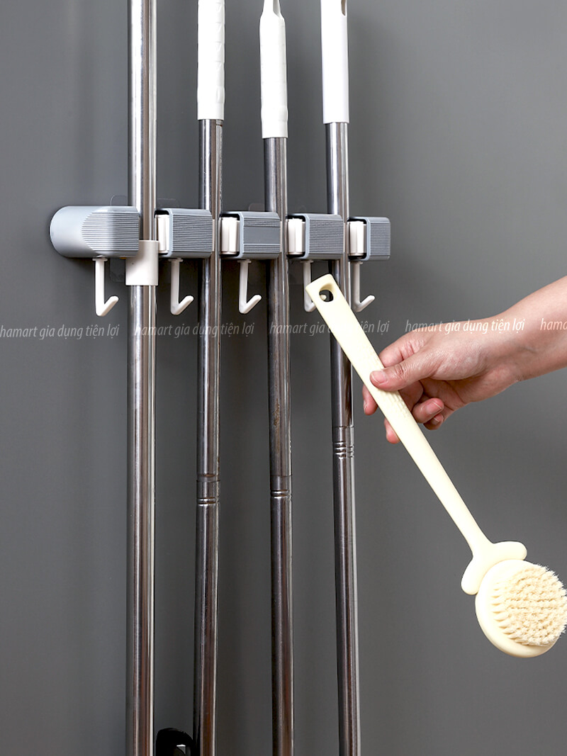 ✨Giá Đỡ Chổi 4 Lỗ Kẹp Cây Lau Nhà 5 Móc Treo Khăn Bàn Chải Cọ Tắm Đa Năng Hamart Dán Tường Siêu Dính
