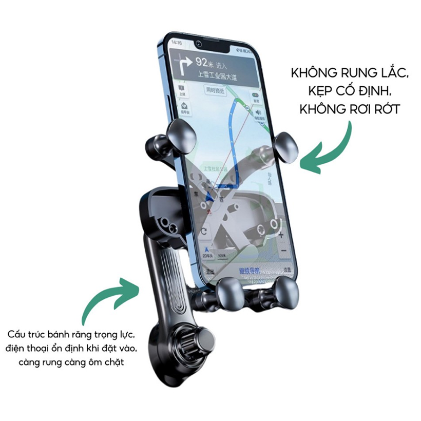 Công dụng: Giữ điện thoại chắc chắn, phù hợp kích thước điện thoại 4,2-7 inch, móc cửa gió khe ngang