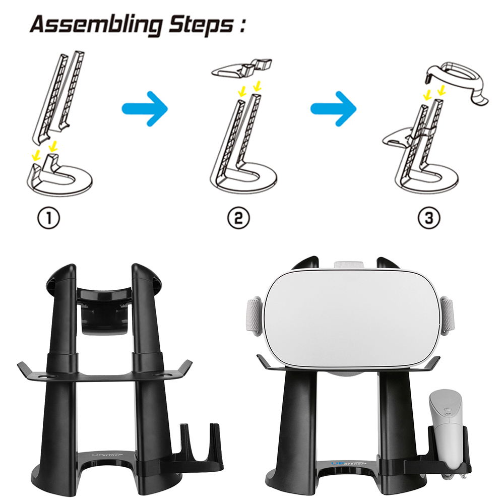 - Easy to assemble. Specification: Brand Name: UPartner Color: Black Compatibility: For Oculus Go / Samsung Gear VR / Daydream View / Vive Focus/ Sony PlayStation Assembled Item Size: approx. 25.3 24.2 22cm / 9.96 9.52 8.66in Assembled Item Weight: approx. 326g / 11.51oz Package Size: approx. 28.0 21.9 9.3cm / 11.02 8.62 3.66in Package Weight: approx. 536g / 18.92oz Package List: 1 * VR Headset Holder