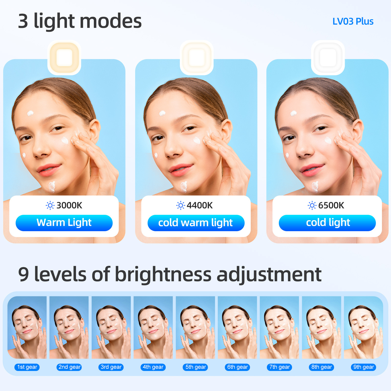 Gương trang điểm có đèn Led Livestream G3 tích hợp giá đỡ và kẹp điện thoại cao cấp