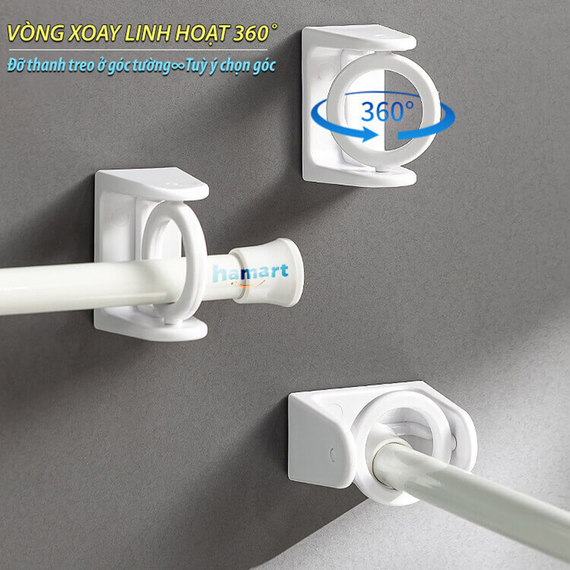 ✨Giá Đỡ Thanh Treo Rèm Dán Góc Tường Xoay 360 Hamart Móc Vòng Tròn Siêu Dính Cố Định Đa Năng