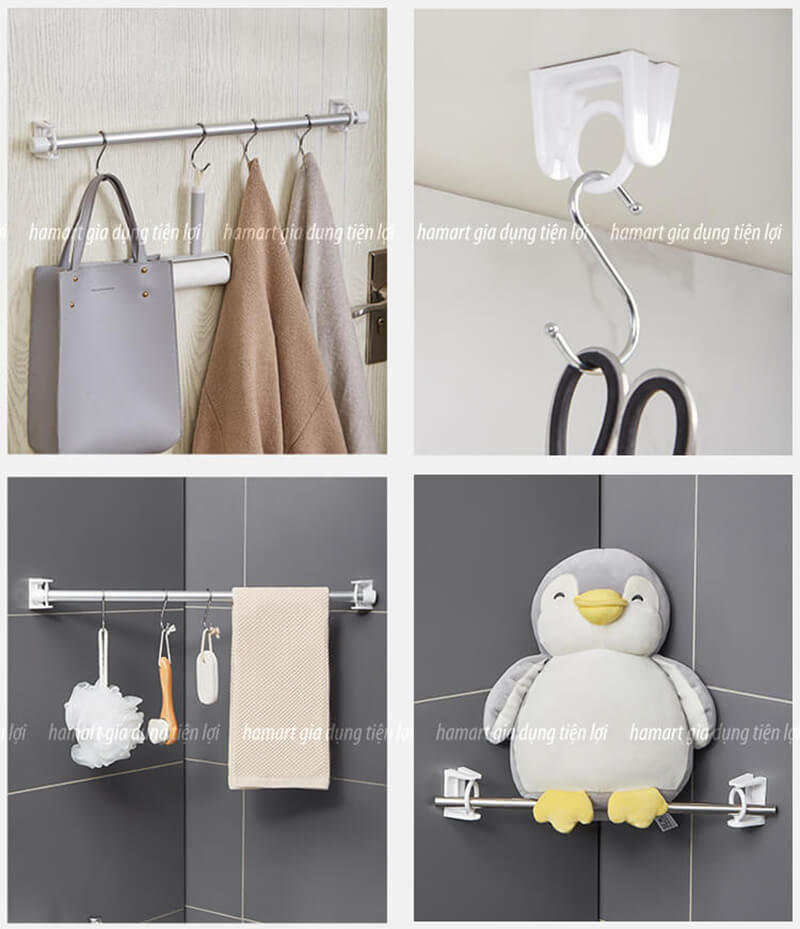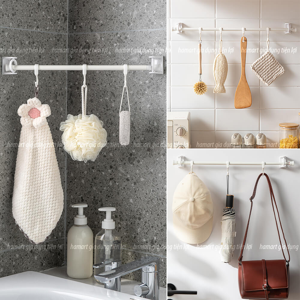 - Ứng dụng rộng rãi: Thích hợp để sử dụng với thanh hình trụ tròn đường kính ≤23mm, để treo rèm phòng tắm, đồ dùng phòng tắm, đồ trang trí tiệc, treo khăn, quần áo ...