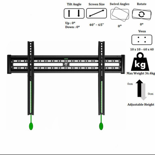 Hãng sản xuất: North Bayou + Xuất xứ: Trung quốc + Loại Giá: Giá treo TV áp sát tường cố định (fixed wall mount). + Công dụng: Treo TV cố định trên tường. + Vật liệu: Sắt SPCC sơn tĩnh điện. + Dùng cho các màn hình phẳng 40 - 65 inch. + Tải trọng: 68,2 kg. + Cách tường 29 mm. + Cân nặng: 3,2 kg. + Tiêu chuẩn VESA (tâm lỗ vít): 100 x 100 đến 600 x 400mm.