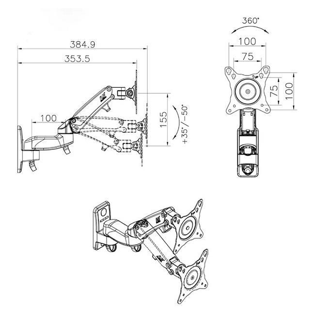 Hãng sản xuất: North Bayou Phù hợp với màn hình từ 17-27 inch Tải trọng: 7kg Xoay: 360 ° Qoay: 180 ° + Góc nghiêng từ +35° tới -50 ° Đóng gói: 39 x 28,5