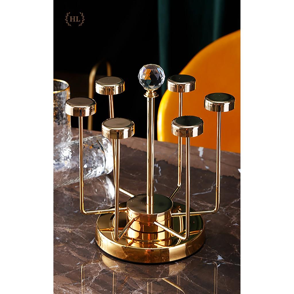 Giá cắm 6 chiếc cốc dạng gọn (CL95965) Giá có khay hứng nước Chất liệu sắt sơn tĩnh điện cao cấp màu vàng cực sang chảnh Dễ vệ sinh, không bị hoen rỉ Kiểu dáng