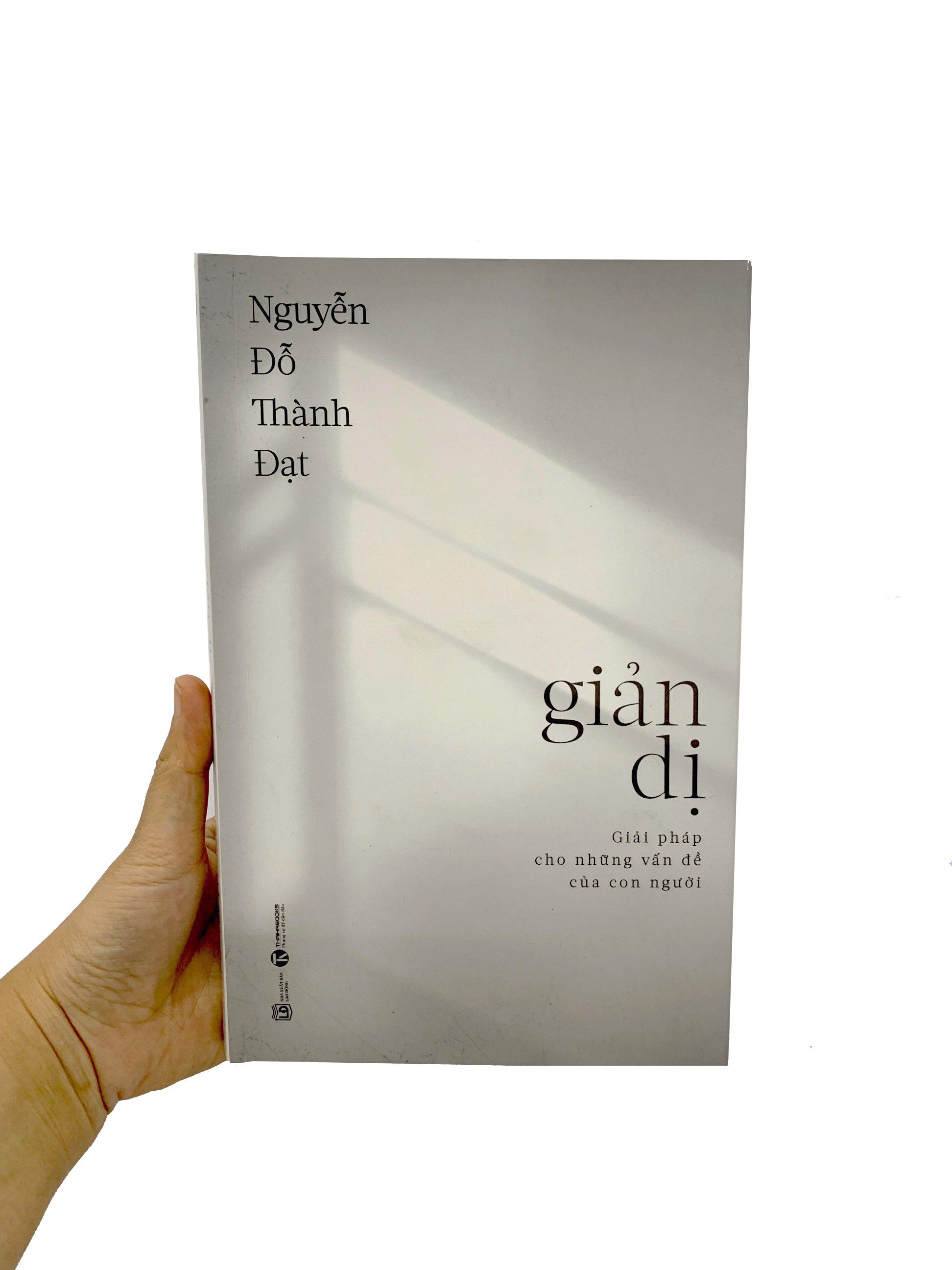 Cuốn sách này không phải là một cẩm nang về cách sống, hay hướng dẫn bạn thực hành một lối sống chuẩn mực. Thay vào đó, cuốn sách đi sâu hơn trong việc lý luận và xây dựng một hệ thống tư tưởng cho một cuộc sống đơn giản và hiệu quả. Trong cuốn sách Giản dị, tác giả Nguyễn Đỗ Thành Đạt đã đưa ra những suy nghiệm và tư tưởng về phương cách sống giản dị, một lối sống được nhiều người theo đuổi. Với mong muốn mang tới cho bạn đọc trước hết sự thay đổi trong tâm thức, để hiểu tại sao chúng ta cần sống một cuộc đời đơn giản hơn, nói cách khác, tại sao tư tưởng giản dị lại chính là chìa khóa giải quyết mọi vấn đề mà nhân loại đang phải đối mặt. Trích lời tác giả: “Trong nhiều năm sống giữa hai thái cực giàu và nghèo, giữa thiếu thốn và dư dả, giữa đạm bạc và xa hoa, tôi đã suy nghiệm rất nhiều về khao khát của con người khi tìm cách bứt ra khỏi đói nghèo và vươn tới được sự giàu có. Mấu chốt đằng sau rõ ràng là để đạt tới cái mà chúng ta gọi là “hạnh phúc”, một từ tương đối mơ hồ, khó nắm bắt, nhưng đầy hứa hẹn. Sau cùng, tôi đã tự tìm ra cho mình thứ viên mãn hơn hết thảy, đó là đời sống giản dị. Thứ đời sống mà nghe qua thì không có gì hấp dẫn, không có gì đặc biệt và thật dễ để đạt tới, ấy thế mà nó lại được ưa chuộng và khuyến khích bởi rất nhiều vĩ nhân từ cổ chí kim. Giờ đây, nó là tư tưởng đang trỗi dậy mạnh mẽ, sống dưới cái tên “chủ nghĩa tối giản”. Đặc biệt hơn, nó đã trở thành một phong trào được. phát triển bởi những người trẻ, những con người hiện đại, đầy sức sống và giàu trí tuệ.” Về bố cục, tác phẩm này sẽ được chia thành bốn phần: Phần đầu nói về tư duy đúng đắn trong việc sở hữu và sử dụng đồ đạc, nó phê phán (không thương tiếc) những thói quen vốn đã phổ biến trong xã hội hiện đại. Phần hai giải thích lý do, đề ra những mục đích ta hướng tới khi lựa chọn một cuộc sống giản dị. Phần ba là những thêm thắt về tư tưởng sống, được bổ sung như một thứ “gia vị” hoàn chỉnh cho tác phẩm. Phần bốn giới thiệu một số tấm gương tiêu biểu, phân tích những câu chuyện thú vị xoay quanh lối sống này. Trích đoạn sách: Bỏ đi được tâm sợ hãi sự sở hữu không có nghĩa là ta lại bắt đầu tích góp cho mình mọi thứ hay ho ở trên đời. Với tư duy rằng nếu ta không đam mê chúng thì việc ta có nhiều hay ít không còn quan trọng nữa. Thực tế là điều này vẫn tạo ra ảnh hưởng lên bản thân bạn, bạn cần biết rằng trên đời này không có nhiều thứ thực sự cần sở hữu, chúng tồn tại chỉ để lấy cắp đi thời gian và năng lượng quý giá của cuộc đời bạn mà thôi. Đúng như vậy, tôi muốn nói rằng hầu hết các phát minh đều là không cần thiết cho bạn, phần lớn trong số chúng vẫn có ích lợi với ai đó, trong một hoàn cảnh nào đó, nhưng tuyệt đối không phải là với bạn. Tiếng Anh có một thuật ngữ rất hay để biểu thị điều này, đó là “nice-to-have”, nghĩa là có thì cũng hay đấy, thú vị đấy, nhưng không có thì cũng chả sao, chẳng là vấn đề với bạn (ít nhất là ở hiện tại). Những người có quá nhiều thứ để lo lắng và khao khát, thì rất khó có đủ thời gian cho chính bản thân họ. Tôi đặc biệt nhấn mạnh cụm từ “bản thân họ”, bởi nhiều người thường hay nhầm lẫn, đánh đồng những đồ vật họ sở hữu với chính con người, bản thể của họ. Đặc biệt là với những món đồ có giá trị cao, những món đồ mà có khi họ phải dành ra rất nhiều năm cố gắng, đã phải gạt bỏ danh dự, lương tâm của mình để có cho được. Thậm chí họ đã phải liều cả mạng sống của mình để mang về thứ tiền tài vật chất ấy, nên họ luôn lẫn lộn, họ lấy chúng làm thước đo cho nhân phẩm, cho bản ngã, cho việc họ có đáng quý giữa xã hội này hay không. Họ quan tâm tới thứ quần áo này, đồ công nghệ kia, họ tìm hiểu tất tần tật về các bộ phim, các nghệ sĩ, họ cập nhật và nghe mọi bản nhạc mới nhất, sưu tầm đủ thứ vật dụng quý hiếm, hay săn lùng, mang về, chất đầy các món đồ sang trọng để tô điểm cho căn nhà của họ. Như vậy thì lấy đâu ra thời gian để mà quan tâm tới những thứ giá trị hơn nhiều, như an dưỡng cho tâm hồn, bồi bổ cho trí tuệ? Bởi vì chú trọng tới mấy cái đó, đời sống của họ ở nhiều mặt khác cũng bị ảnh hưởng, như họ sẽ có xu hướng thích đi ra ngoài, tới các bữa tiệc, gặp gỡ bạn bè, trải nghiệm mọi loại dịch vụ, tận hưởng các lạc thú mà con người đến nay có thể nghĩ ra được. Nói cách khác, niềm đam mê đồ vật đi kèm với niềm đam mê các hoạt động lạc thú, chúng song hành cùng nhau, bởi chúng là thứ hỗ trợ không thể thiếu để gia tăng các lạc thú ấy