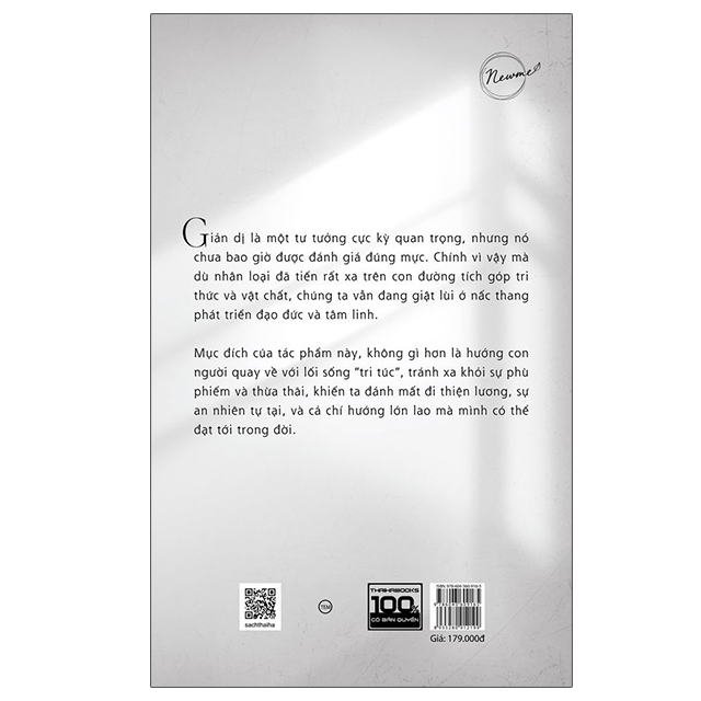 Cuốn sách này không phải là một cẩm nang về cách sống, hay hướng dẫn bạn thực hành một lối sống chuẩn mực. Thay vào đó, cuốn sách đi sâu hơn trong việc lý luận và xây dựng một hệ thống tư tưởng cho một cuộc sống đơn giản và hiệu quả.